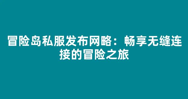 冒险岛私服发布网略:畅享无缝连接的冒险之旅