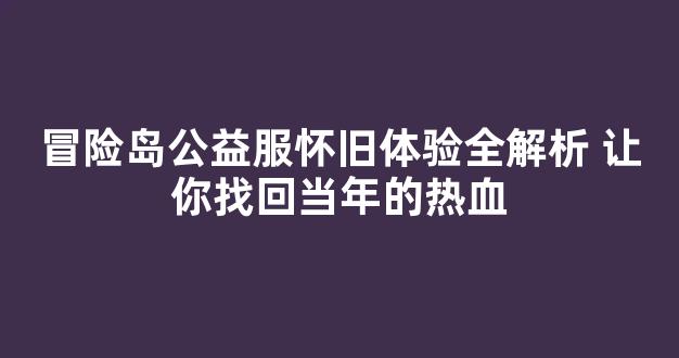 冒险岛公益服怀旧体验全解析 让你找回当年的热血